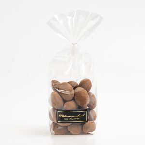 Delicious roasted almonds coated with dark chocolate. Ideal as a small gift.