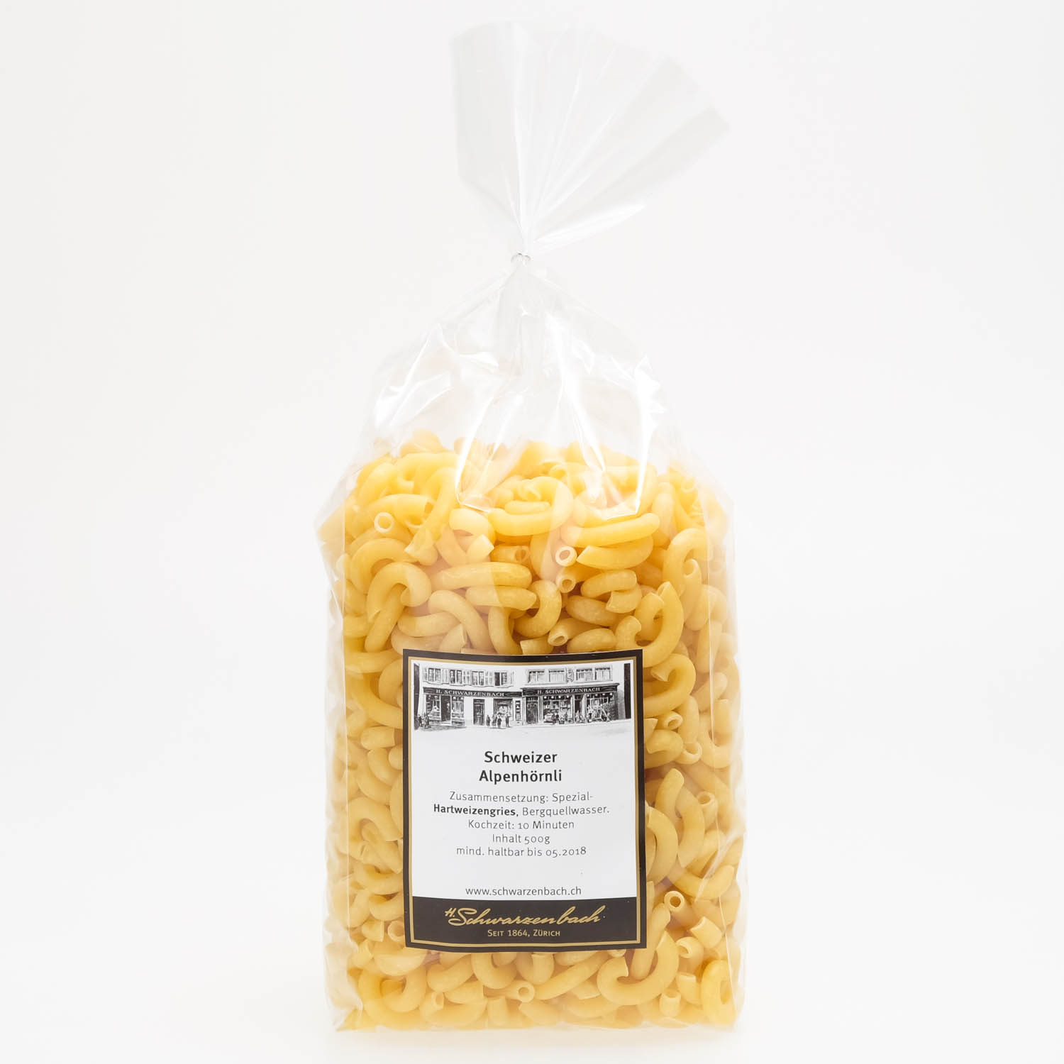 The best Swiss pasta for traditional Swiss dishes such as “Älpler-Magronen” or “Hörnli mit Ghackets”.