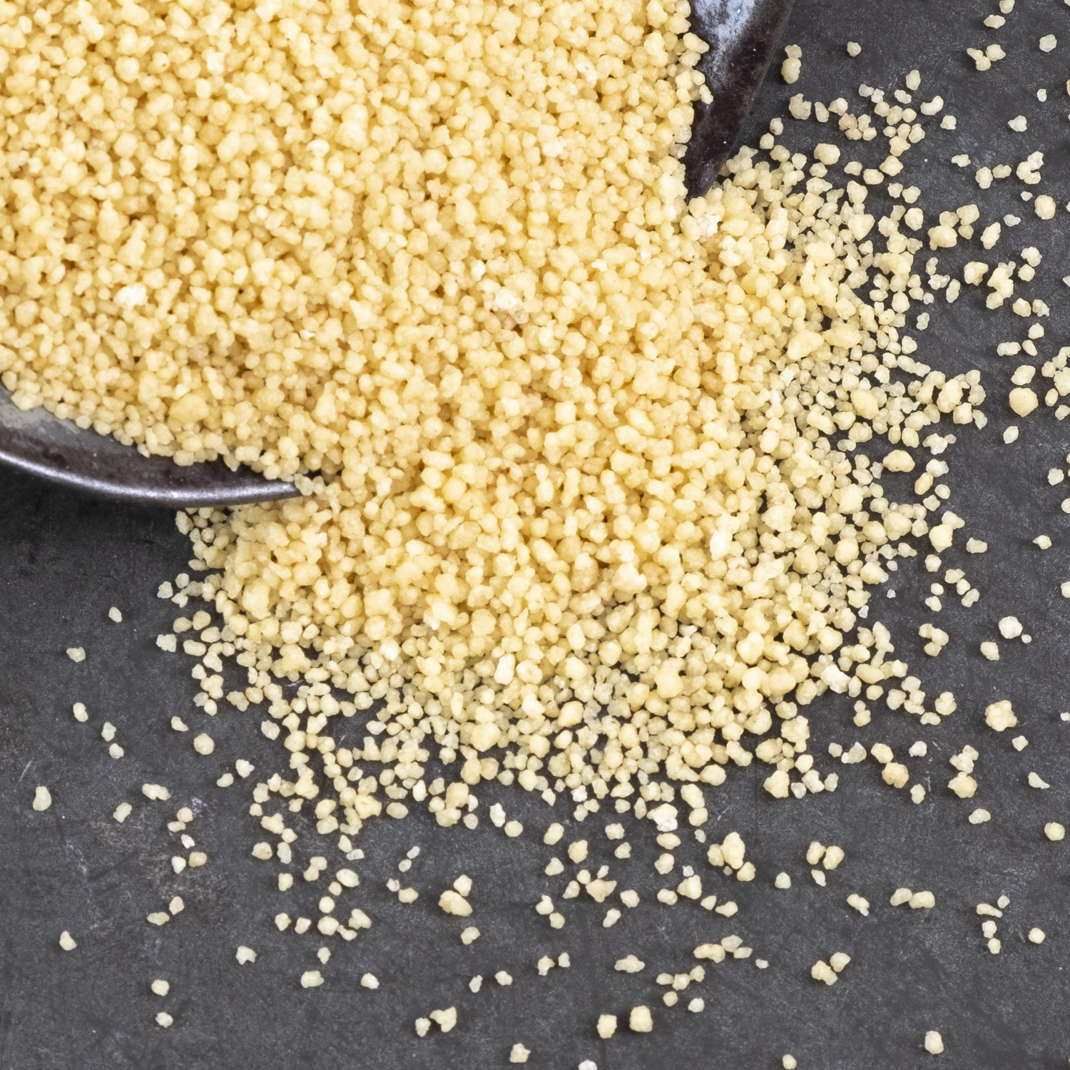 Preparation: Put the couscous in a bowl, mix with salt and spices. Add double the amount of hot water and let it absorb completely.
