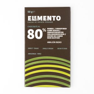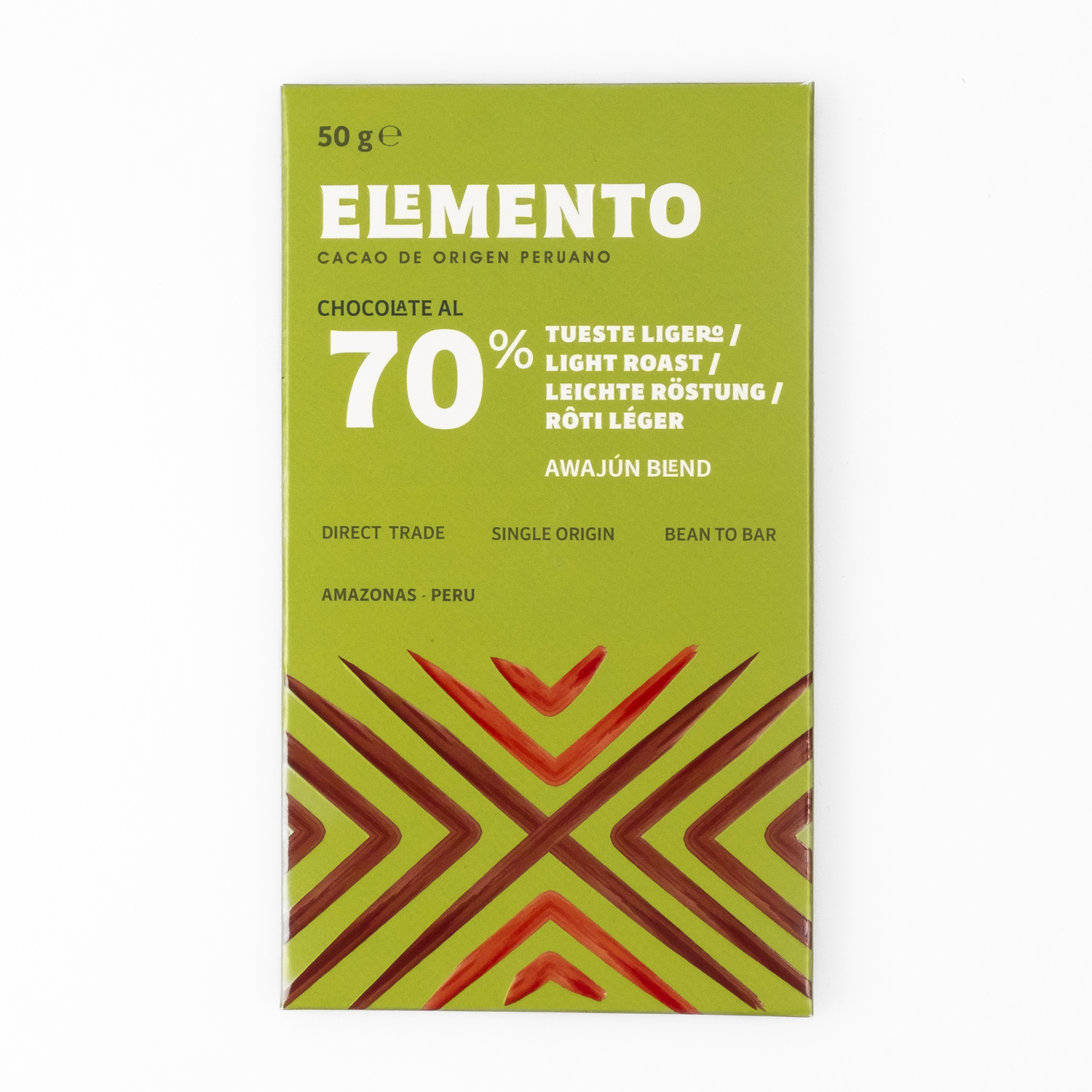 Elemento Chocolate crafts its products in Lima, Peru, using aromatic fine cacao grown by the indigenous Awajún people of the Peruvian Amazon. More than 500 smallholder farmers benefit from fair pricing, training, and fermentation centers, while preserving the rainforest through traditional agroforestry methods. Each batch of cacao is roasted with precision: Elemento designs individual roasting curves for every chocolate to accentuate unique flavor nuances. The “Trilogy of Roasting”, light, medium, and dark roast, invites chocolate lovers to taste how roasting shapes aroma and complexity. The collection is completed by a dark chocolate sweetened with panela, an unrefined whole cane sugar that adds a distinctive depth of flavor.