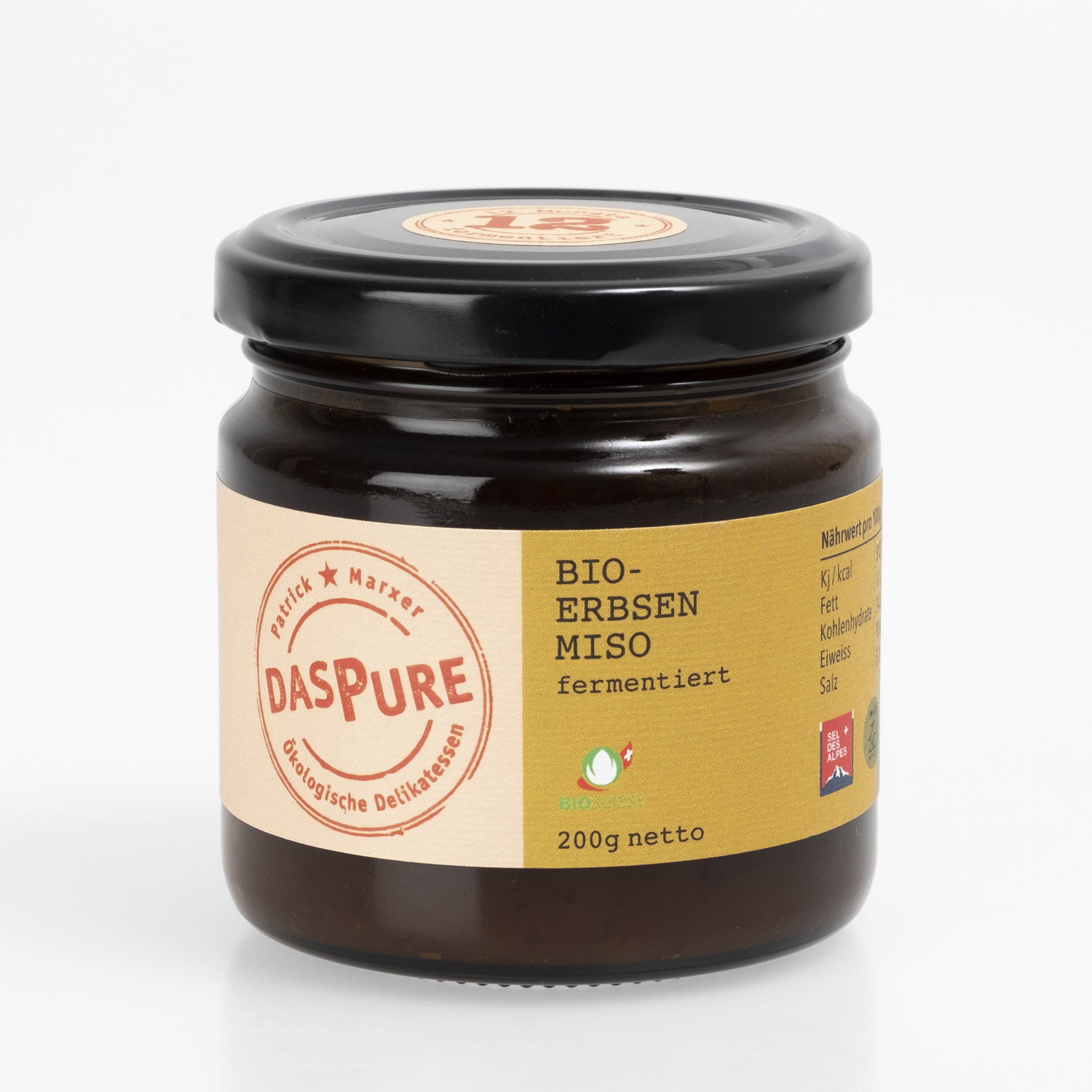 Miso is a Japanese spice paste and is basically made from fermented soybeans with varying amounts of rice, barley, other grains or pseudocereals and table salt. For this miso from Patrick Marxer’s “Das Pure” in Wetzikon, Swiss peas were used instead of soybeans.