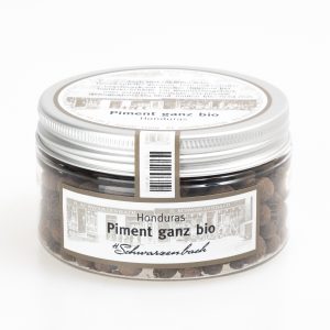 Piment, auch Nelkenpfeffer, Jamaikapfeffer oder Allspice genannt, ist sehr aromatisch und erinnert im Geschmack an Muskatnuss, Zimt, Pfeffer und Gewürznelken mit einer frischen holzigen Note und mittlerer Schärfe. Piment wird in Eintöpfen, Suppen, asiatischen Gerichten, Kompotten, in Weihnachtsgebäck wie Lebkuchen oder für Gewürzkuchen verwendet.