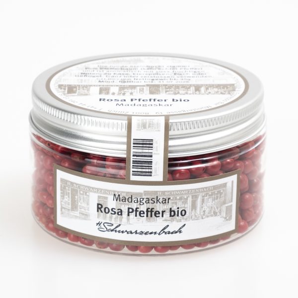 Rosa Pfeffer wird vom Pfefferbaum gewonnen, welcher nicht zur Familie der Pfeffergewächse gehört (Schinus terebinthifolius, verwandt mit der Pistazien- oder Cashewpflanze). Die korallenroten Steinfrüchte enthalten etwas Piperin, welches ihnen den pfefferähnlichen Geschmack verleiht, gepaart mit einer angenehm süssen Note. Passt hervorragend zu Eierspeisen.